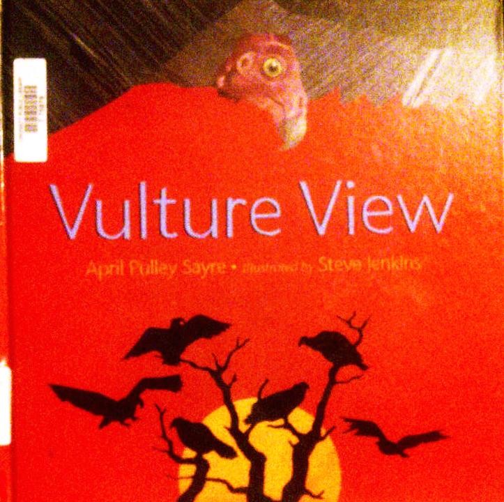 I am jumping from a 2,754-word picture book review yesterday to a 180-word picture book review today!  For this blog review I picked up another fascinating book by April Pulley Sayre, Vulture View.  I know personally this bird is intriguing to children.  Vultures, or ‘buzzards’ in some areas, are one of the first birds children recognize.  They are large and noticeable, they sweep through the skies in ominous silence, and bravely feast on road kill on even the busiest highways. What’s not to love?